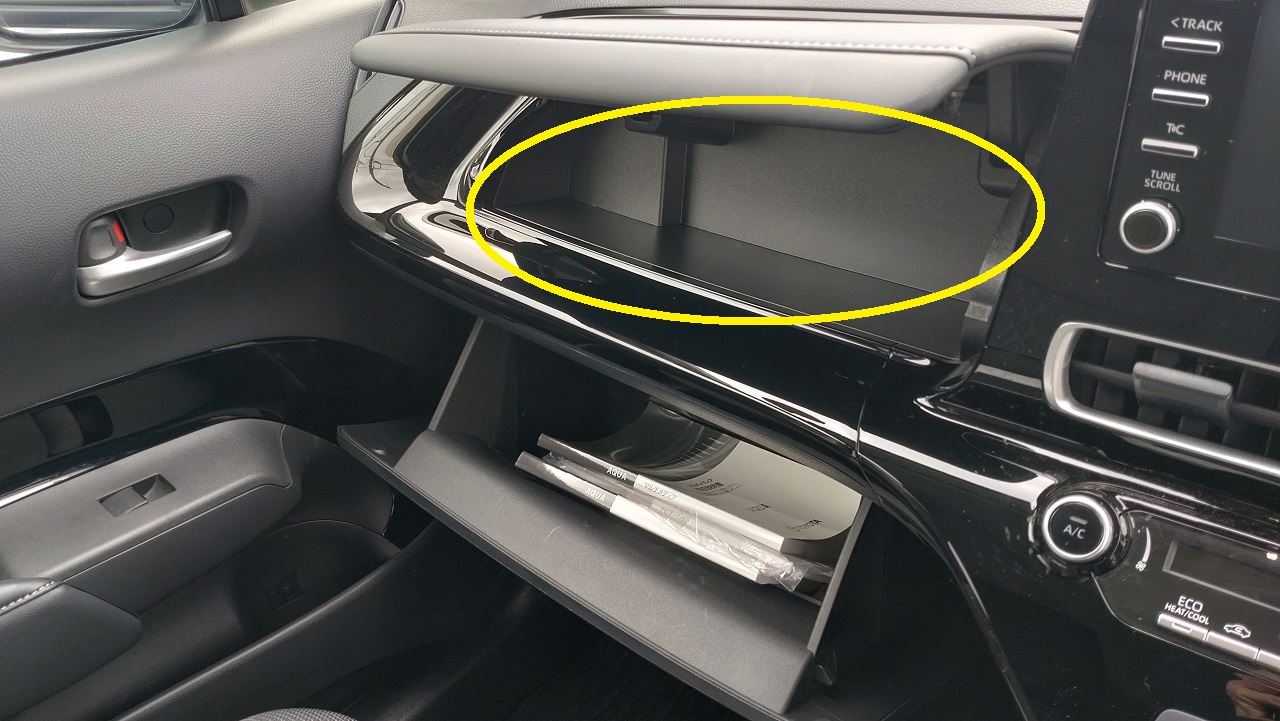ノア・VOXY同様・現行アクアにもこちらに収納スペースがあります