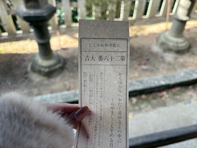 去年のおみくじは凶だったのが今年はなんと大吉でした