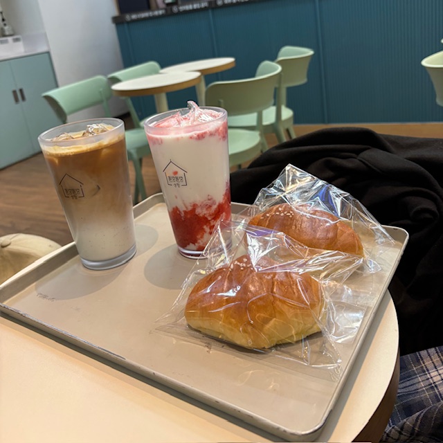 到着後、預け荷物を受け取って真っ先に向かったのはカフェです(笑)
