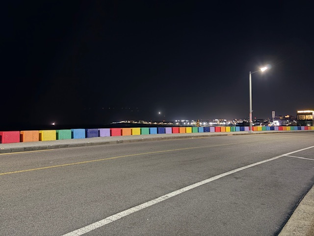 済州空港の北あたりの海沿いに虹色の防護壁がたくさん並んでいます!